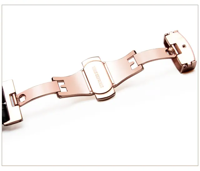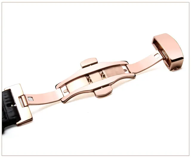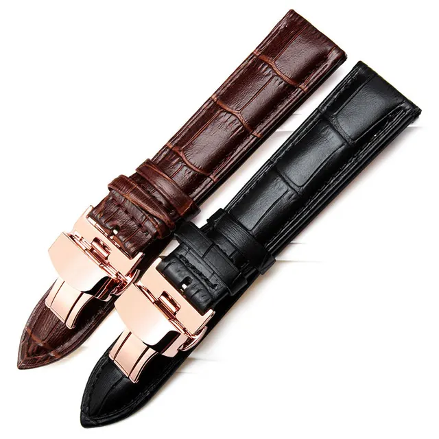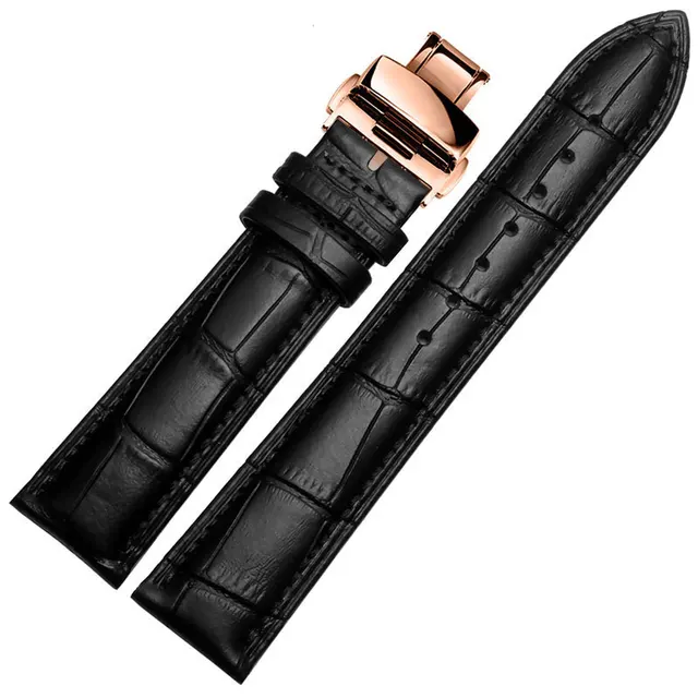 | [해외]16 미리메터 18 미리메터 20 미리메터 22 미리메터 최고급 광택 골드 butterfly 배포 걸쇠 블랙 정품 가죽 손목 시계 스트랩 팔찌 |