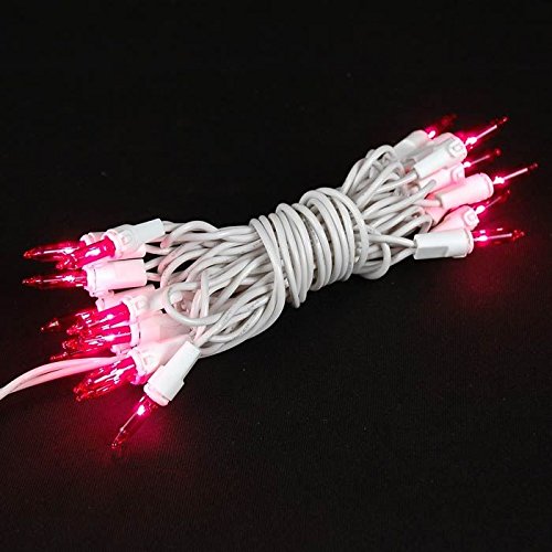 Novelty Lights 20 Light Pink Christmas Craft Mini Light Set, Non-Connectable, White Wire, 8' Long