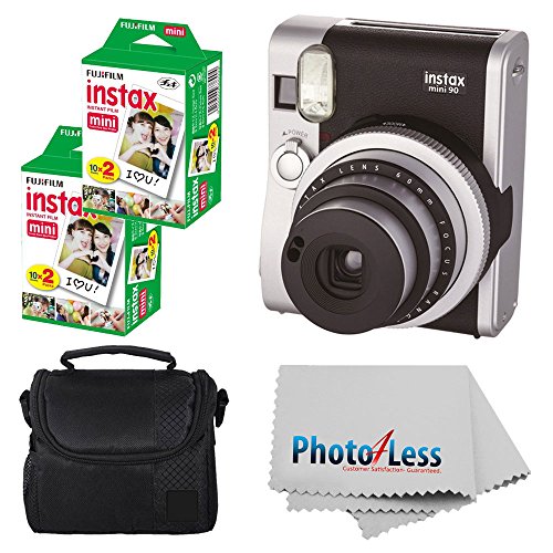 Fujifilm INSTAX Mini 90 Neo Classic Instant Camera (Black) With 2x Fujifilm Instax Mini 20 Pack Instant Film (40 Shots) + Compact Camera Case + Cleaning Cloth - International Version (No Warranty)