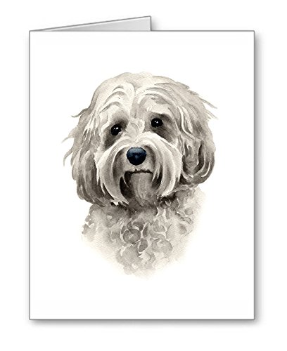 -. Feature : Cockapoo artwork by watercolor artist DJ Rogers. / Note card size is 4.25 x 5.5 inches / Matching white envelopes included. / Note cards are blank inside for your personal message. / Suitable for framing.