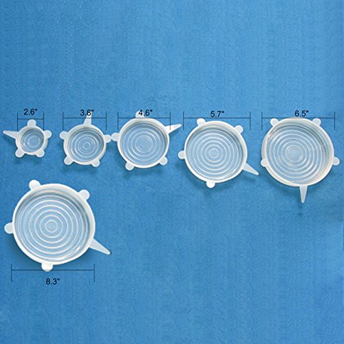 Multiple sizes: Set of 5 different size of lids for different use, suitable for most containers in your kitchen. Freely stretch to fit the rim of the containers, simply and convenient.