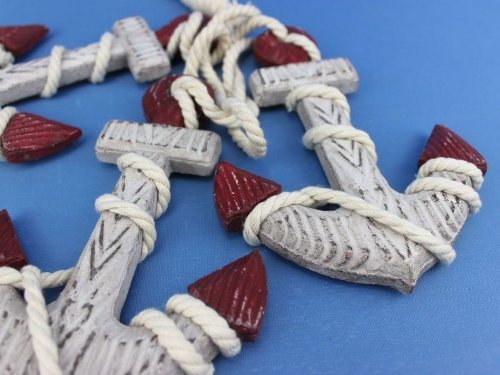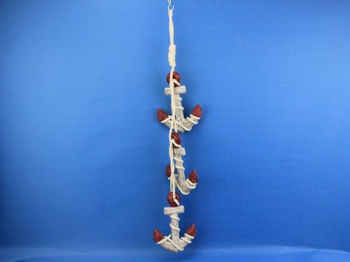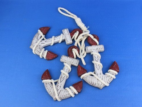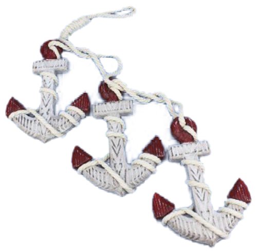 Hampton Nautical Wooden Rustic Red Triple Anchor Set, 7"