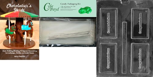 Cybrtrayd Congratulations Business Card Chocolate Candy Mold with Chocolatier's Bundle, Includes 25 Cello Bags and 25 Silver Twist Ties