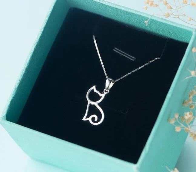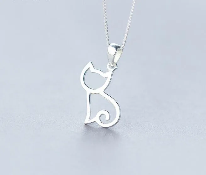 Name: Funky Cute Real. 925 Sterling Silver Open Cat Pendant Pet Necklace Sterling-silver-jewelry GTLX620