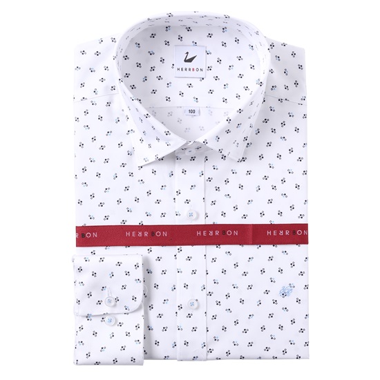 -면혼방 소재의 투톤 모티브의 스냅부착된 슬림핏셔츠.