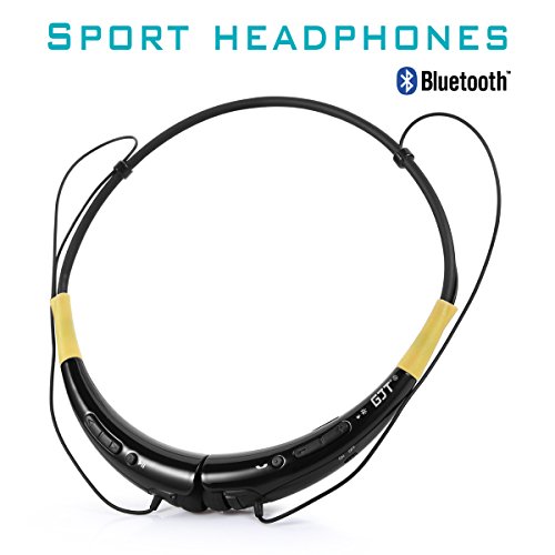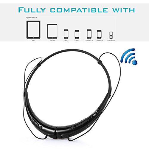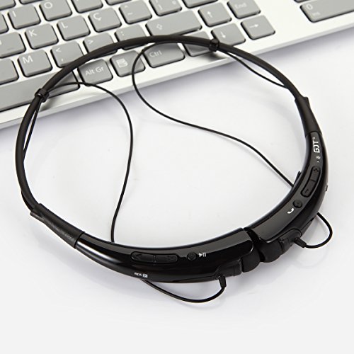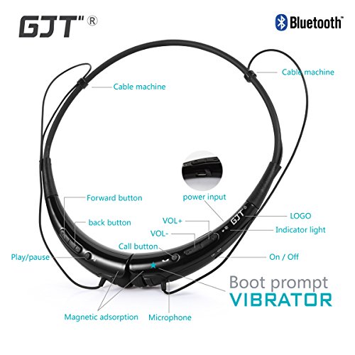 GJT®HBS-740 Wireless Stereo Bluetooth 4.0 Headset Universal Vibration Neckband Style Earphone Headphone for iPhone 6 6S 5S, Samsung Galaxy S6 S6 edge, Note 4 3 2 Android Cellphones Enabled Bluetooth Device (BLACK)
