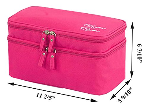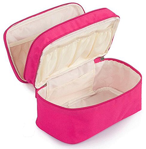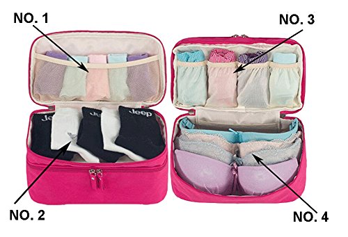 Product Description How you organize your travel accessories? Are they get smooshed or tangled up? This Misslo Portable Travel Bra Organizer is an excellent bag for long or short trips: Design: Two zippered compartment; The top zippered compartment has a mesh pocket on the lid and two straps on the bottom; The bottom zippered compartment has a middle pouch, a large open bottom and then four elastic pockets on the lid