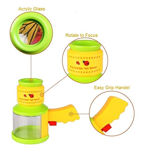 BUG VIEWER AND MAGNIFIER: The adjustable microscope lense allows for close up magnified viewing of the insect. No Touching or harming natures little ones!