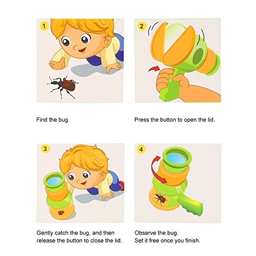 EASE OF USE: This bug catching magnifier is simple and easy to use. Simply press the trigger button to open, and release to shut the lid to catch a bug inside and observe. 2 plastic bug tweezers are included for those hard to pick up little ones! The bug viewer for kids design is colorful, lightweight and easy to carry making it is easy to use in your yard, at the park, and more! It allows you to catch and view insects without touching the bug, making it a great choice for both your child and the insect. This kids scientific toy is also great for looking at flowers and other nature up close in a healthy and safe way.