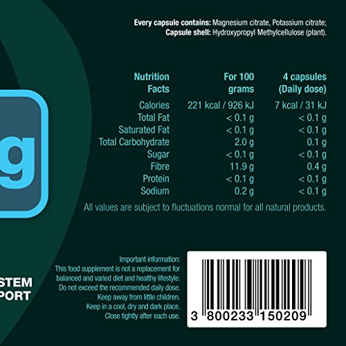 Ingredients: magnesium citrate, calcium citrate, Capsule shell: Bio - hydroxypropyl methylcellulose (plant).Suggested Usage: Take four (4) capsules daily with plenty of fluids.