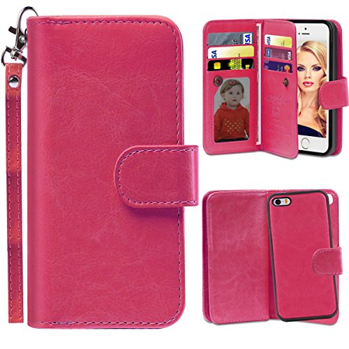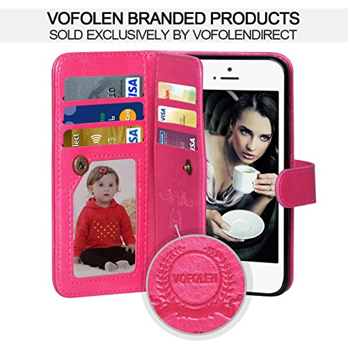 iPhone 5S Case, Vofolen® Flip Cover iPhone 5S Wallet Case Folio PU Leather Holster Case Protective Shell Magnetic Removable Slim Cover Card Holder Slots Wrist Strap for Apple iPhone 5 5S - Rose