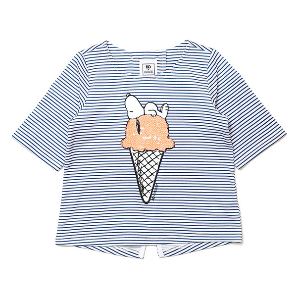 블루독 스누피 크롭 티셔츠는 5부 소매 기장으로 스누피를 포인트로하여 큐트한 스타일 연출이 가능한 제품입니다