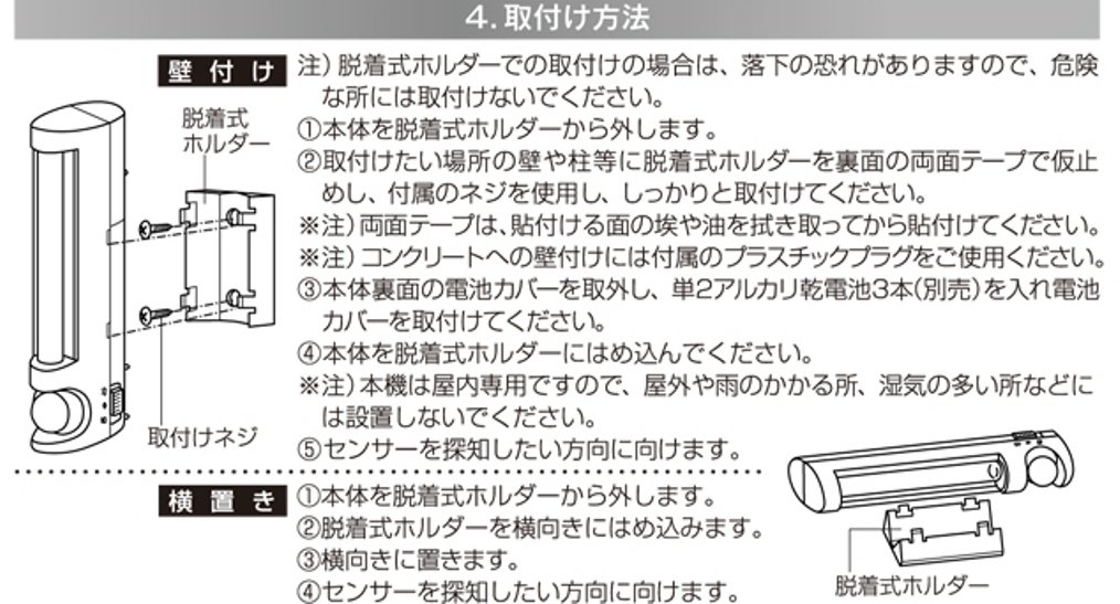 ● Since it is a battery type, it can be installed in places where wiring is unnecessary and there is no power supply