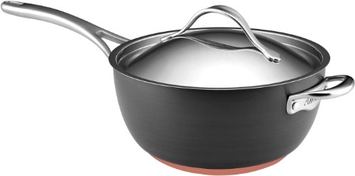 The induction-suitable saucier's durable, hard-anodized construction is crafted with copper to deliver optimum heat control
