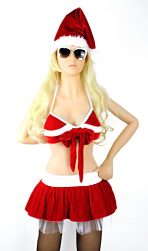 Title : Hisionlee Sexy Deep V-neck Christmas Santa Costume Mini skirt Sexy dress(White)
