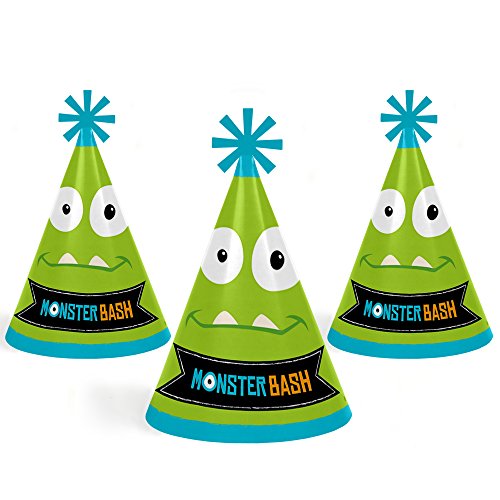 -. Title : Monster Bash - Cone Little Monster Happy Birthday Party Hats for Kids and Adults - Set of 8 (Standard Size)
