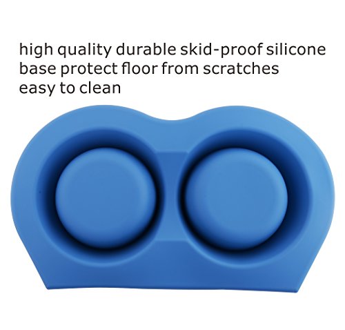 This Roysili double dog bowl design is concenient for feeding food and water or Feed two pets at the same time. The extra large base of the silicone stand keep food and water on the mat and bottom from sliding across the floor when your dog is eating. An Awesome Feeding Station Solution You And Your Pet Will Love !!