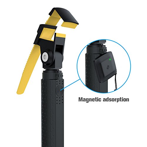 Feature : ABS Hard Plastic for fixation and TPR Soft Plastic for protection. More firmly fix and better protect your phone. / Separate Bluetooth Remote Shutter. With magnetically adsorptive on the shaft of the selfie stick, also can be used separately or alone. / Bionics design imitate the hornbill mouth. Hornbill, born with strong biting force, won't drop its biting items. Firmly fix your phone, never fall off. / Extendable length up to 60cm (23inch). 180° free adjustment angle. Orifice valve design can connect other camera accessories such as tripod or GoPro. / Adjustable holder from 40mm to 150 mm, suitable for smartphone from 3.5 inch to 5.5 inch. Perfect for iPhone 6s/6s Plus/6/6 Plus/5s/5c Samsung Galaxy and most of the smartphone.