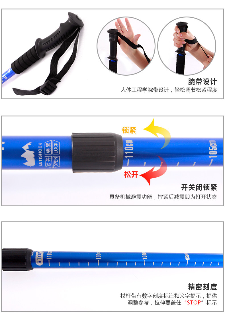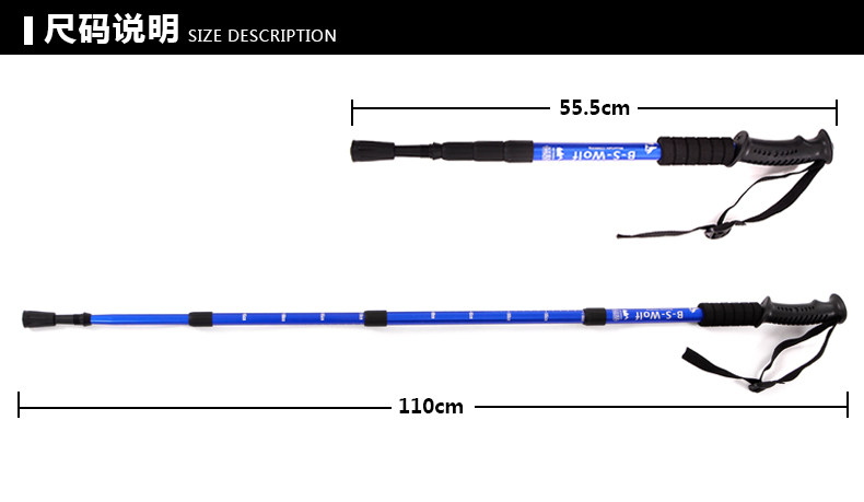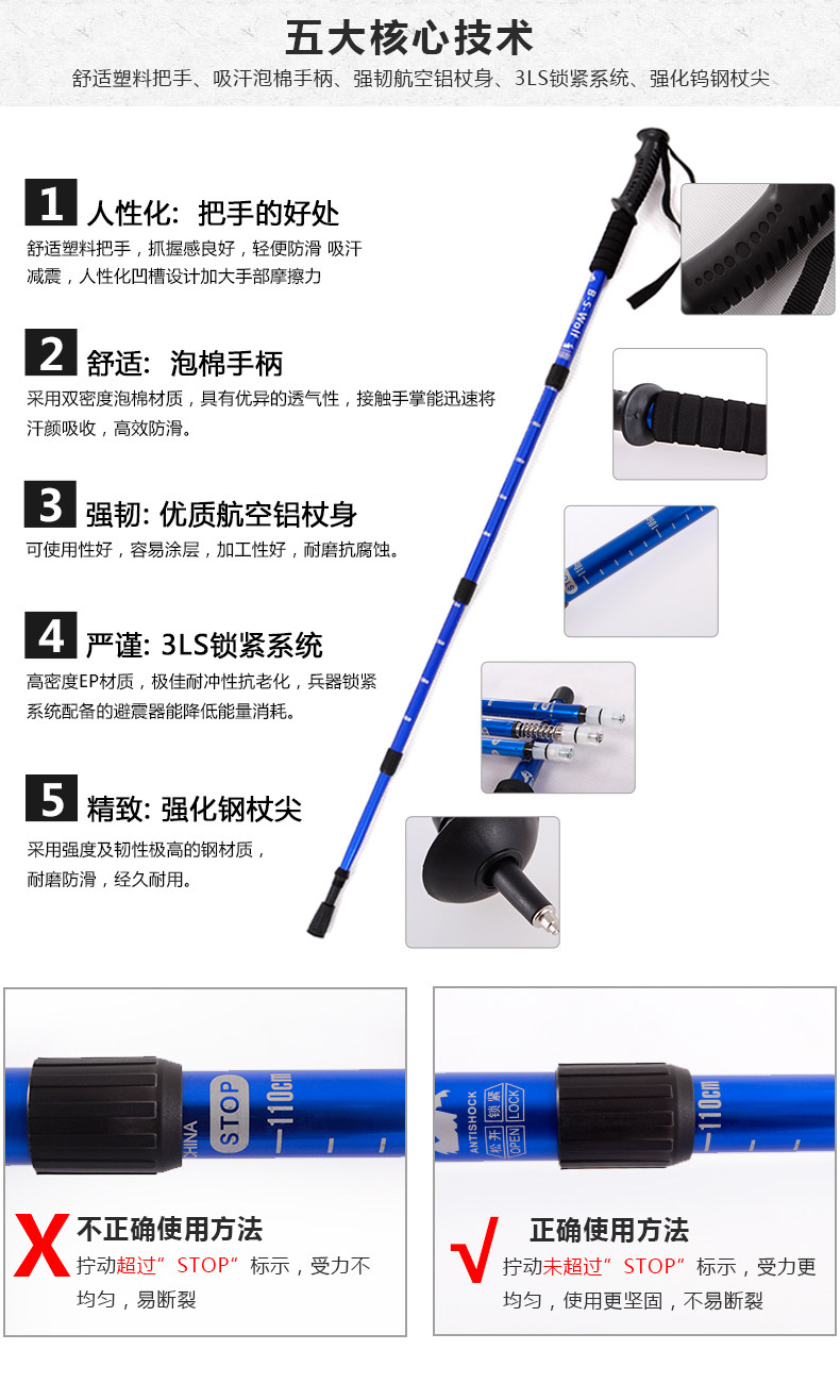 北山狼登山杖 户外超轻徒步手杖爬山拐杖 直柄可伸缩手杖铝合金