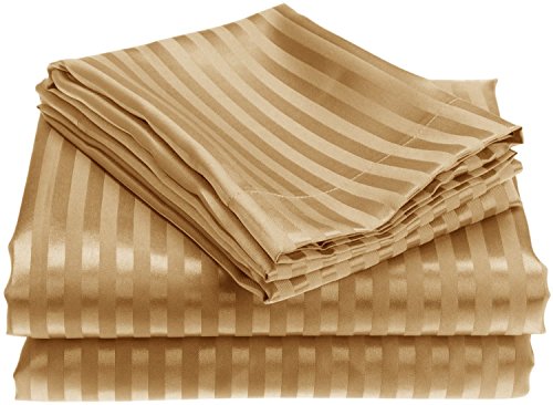 Peach Couture Home Collection Luxurious Pure Cotton Sateen Stripe Sheet Set (Queen, Gold)