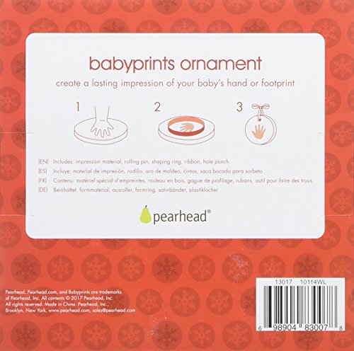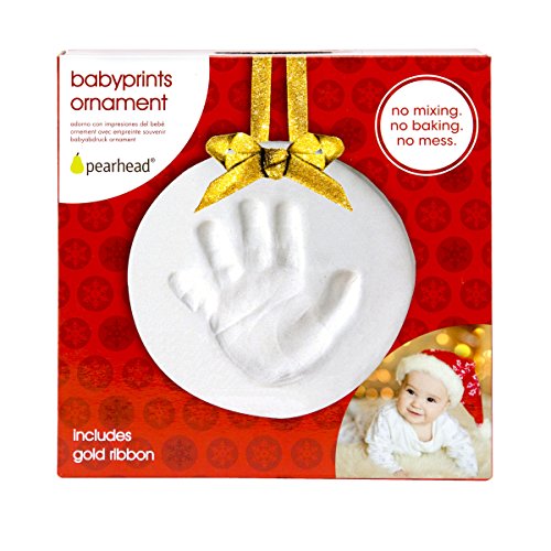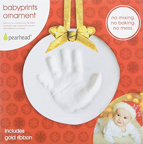 Celebrate the holiday season with the Pearhead Babyprints Christmas Ornament. Each winter when the year winds down, you'll find your little one just a little bigger and a touch more independent. With the Pearhead Babyprints Christmas Ornament, your family can start a unique holiday tradition right from baby's first Christmas. Each year you'll remember all the precious Christmas memories when you unwrap this holiday decoration and look at the small impression of your baby's handprint. You'll smile to see how much they've grown up when you hang the personalized ornament upon your decked-out Christmas tree. This keepsake isn't just for Christmas. You will be able to cherish baby's first Hanukkah or holiday season with the babyprints keepsake. The Pearhead Baby Handprint Ornament Kit is simple to use as well. This kit includes everything you need to make a clay handprint ornament. You'll receive no-mess impression clay, a rolling pin, a plastic hole punch and cutting ring for shaping, along with a gold colorful ribbon so it's ready to hang. The clay boasts a non-toxic, baby-safe formula that's ready mold and shape with a sweet little handprint front and center. Tips and tricks: for best handprint or footprint make sure baby is fed, changed and calm. Use rolling pin to desired thickness. Flatten baby's feet or hands and press against the impression clay. Cut, shape and punch a hole for the ribbon. Allow ornament to dry completely before hanging. Your tree ornament is ready for display. This kit can be used with infants and can accommodate hands up to five inches in diameter and feet up to five inches long. Make sure to include this handprint kit on your baby gift registry. And, this charming keepsake also makes a perfect holiday gift, Hanukkah gift, Christmas gift, Mother's gift, Grandparent's gift or baby shower gift. At Pearhead, we aim to create genuine, quality products to celebrate your special moments in life. We are a family of designers, marketers, and trendsetters bringing products to life that will bring a smile to your face. From concept and design to production and customer service, the Pearhead team works together seamlessly every step of the way. Whether your baby is celebrating their first year of life, you are announcing your pregnancy, or your pup is celebrating his first holiday season, Pearhead is here to share your moments in style. ? 0 |