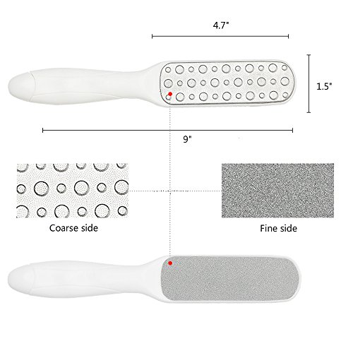 -. Feature : Take Off Callus Easily and Quickly: Pedicure tools are in two different types but the same salon-quality.Colossal Foot Rasp is designed with wavy pattern surface, it could reach inside curves and blind spots easily and quickly, great for cracked heel repair. The Dual Sided Foot File smooths away the last of the hard skin / No Slightest Damage to Your Feet: Made of 304 grade stainless steel, our foot files are mild to your skin and remove dead skin from your feet safely and painlessly. Tip: Pay attention while using our foot file even it's of the highest level safety. Dual-Sided Foot File is recommended if your feet are tender and dead skin issue is not that serious / Fit-Your-Hand Handle Design: Fairyland Pedicure Rasp Handle is made of high-end materials with non-slip frosted texture to provide extra good grip. Even if there is water on your hands, it will not fall. Ergonomic design enables you to use it for a long time without feeling tired. With the big hole on the handle,it can also be hung in the bathroom or anywhere else easily / Function Well Both in Wet and Dry:Made from premium stainless steel, anti-rust and water proof features ensure the foot file set can exfoliate dead skin or callus under both wet and dry condition / Save Money and Time:Are you still spending much money at pedicure salon or taking time on the way to salon?Fairyland callus remover is the best choice for you to get professional foot care pedicure at home.100% customer satisfaction and full refund guarantee allow you to buy our product with confidence. Feel free to contact us if you are not satified with our product, we would be happy to help