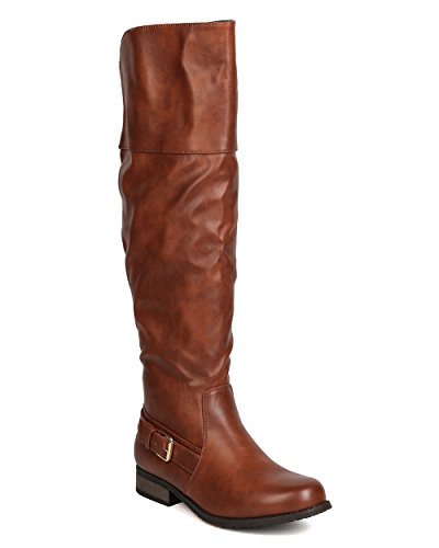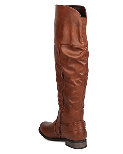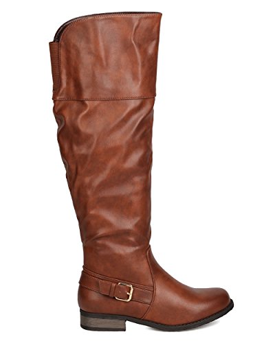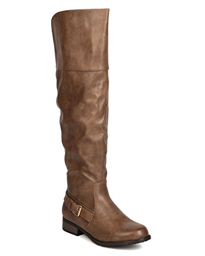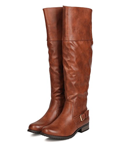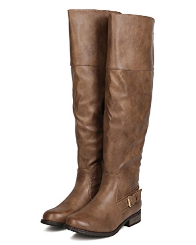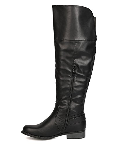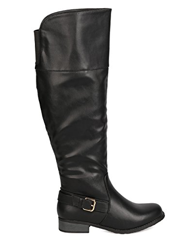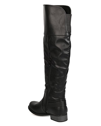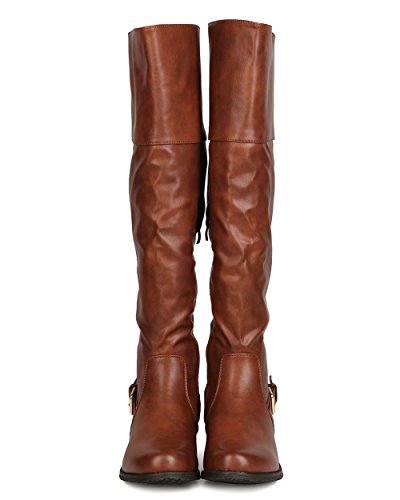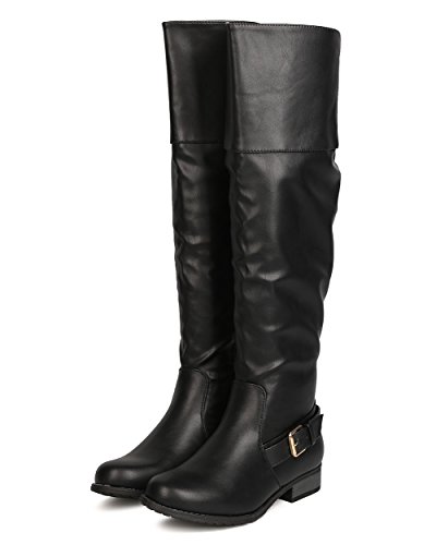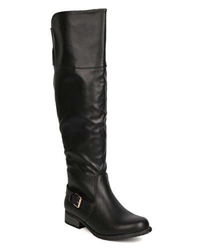 Refresh GK37 Women Leatherette Knee High Buckled Riding Boot