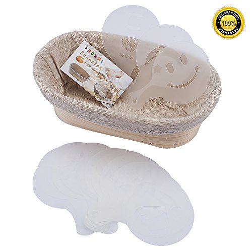 Banneton Proofing Basket,Proofing bowl, Bread proofing basket, 10 Inch Oval Banneton Brotform with 16 Artisan Bread Stencils for 750g/1.5Pound Dough Proofing Rising Rattan Bowl+Cloth Liner