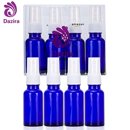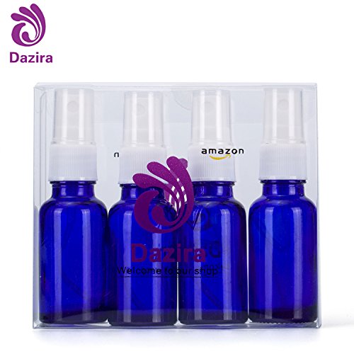 -. Binding : Misc. -. Brand : Dazira -. Feature : Beautiful cobalt blue glass spray bottles are perfect for storing and protecting your essential oils / PERFECT FOR TRAVEL - With this travel size (0.6 oz , 20ml), can carry in your bag conveniently. / Cobalt Blue Glass Protects Against Harmful UV Ray / Clear Glass Bottle - durable and can be reused again and again -. IsAdultProduct : 0 -. Label : Dazira -. Manufacturer : Dazira -. MPN : Spray bottle-y -. PartNumber : Spray bottle-y -. ProductGroup : Beauty -. ProductTypeName : BEAUTY -. Publisher : Dazira -. Studio : Dazira -. Title : Empty Blue Glass bottle,dazira white water mist sprayer 4 Pack of 0.6 oz