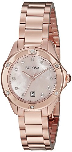 6 diamonds individually hand-set on bezel and 11 on rose mother-of-pearl dial