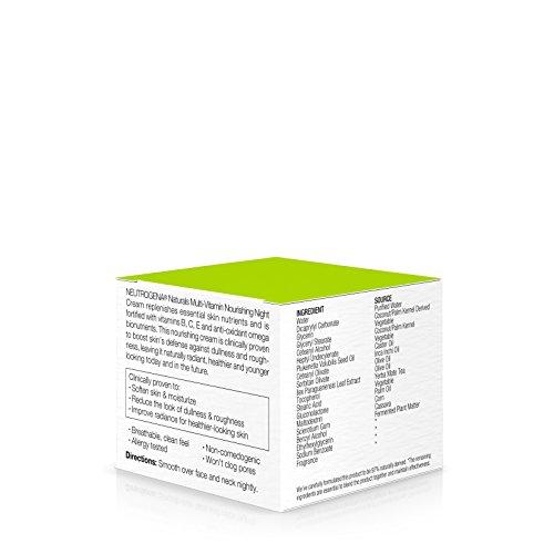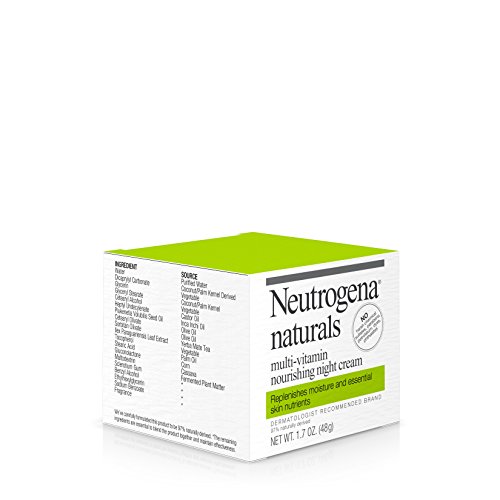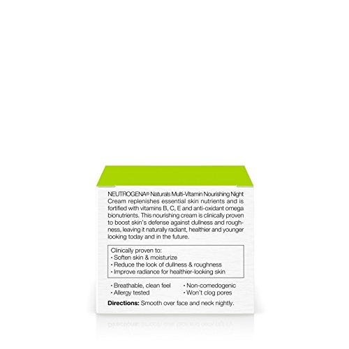 -. Binding : Health and Beauty -. Brand : Neutrogena -. EAN : 0070501025130 -. Feature : Naturally radiant, healthier and younger looking today and in the future / Breathable and clean feel / Allergy tested / 97% naturally derived / This product was not tested on animals -. Label : Johnson & Johnson SLC -. Manufacturer : Johnson & Johnson SLC -. PackageQuantity : 1 -. ProductGroup : Pantry -. ProductTypeName : BEAUTY -. Publisher : Johnson & Johnson SLC -. Studio : Johnson & Johnson SLC -. Title : Neutrogena Naturals Multi-Vitamin Cream, 1.7 Ounce -. UPC : 070501025130