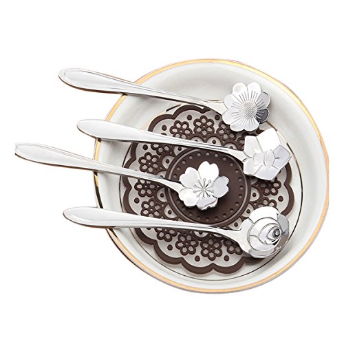 -. Title : CA Mode(JP) ステンレス鋼 スプーン カトラリー 食器 花の形 桜 桔梗花 ローズ コスモス 4点セット