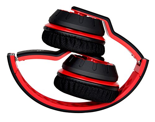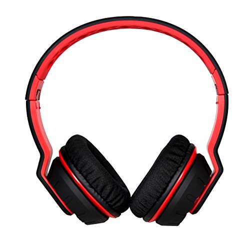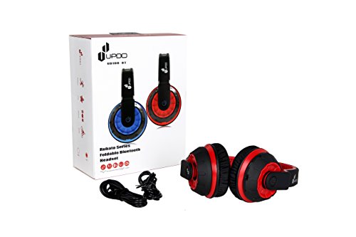 UPDO Rubato Series UD100-BT-RE Folderable Wireless Bluetooth Headphones Over Ear with Classic Adjustable Headsets - Red Color (Red)