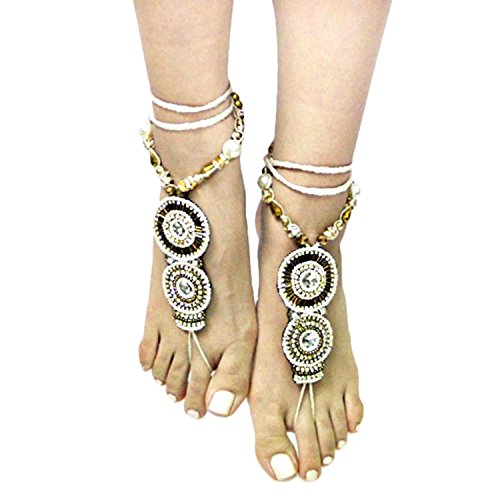 -. Feature : T-Strap Boho Bead Accented Anklet / AZANBF112-WMU / Color : Clear, Gold, Ivory, White / Anklet : Size : 3 1/2" H, 26"+2" L / 1-Pair Can be worn barefoot or with heels/flip flops / Material : Lead compliant