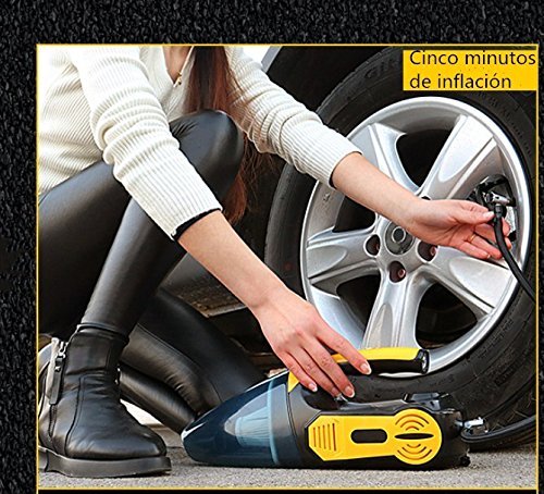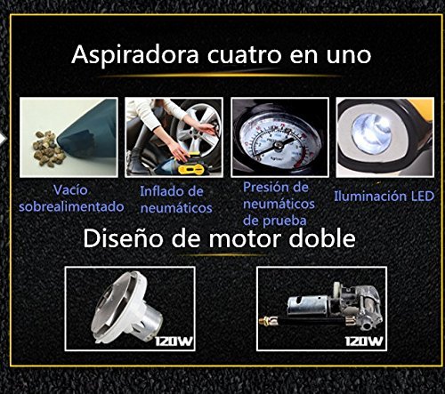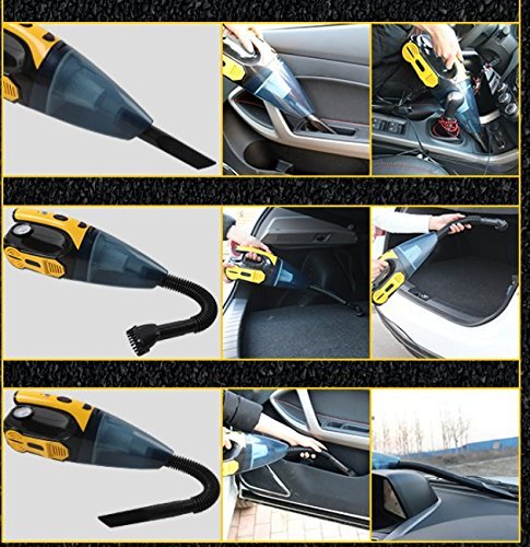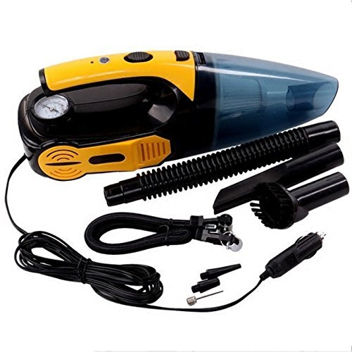 ღ Multiple function 4 in 1: Powerful Wet / Dry car vacuum cleaner 12V 100W. The tire inflator helps you inflate tires anytime anywhere. The tire pressure indicator prevents overinflation. The LED light helps to dispel the darkness.