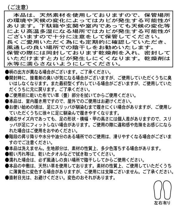 | 素材・材質 | 生地:ポリエステル 中敷:い草 中材・底材:EVA樹脂 |