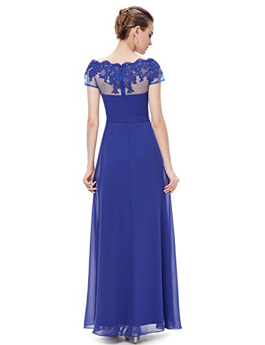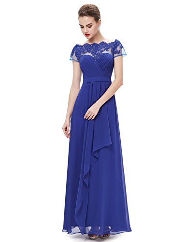 If your looking for a stunning gown for your next formal event, consider our Ever Pretty Lace Short Sleeve Ruched Bust Long Evening Dress. Featuring a stunning short sleeve, lace illusion neckline, this dress has just the right amount of coverage for more conservative events while remaining fashionable on trend. This design is an excellent choice as a formal bridesmaids or mother of the bride dress, but it also works well for nearly any black tie affair. This dress padded enough to make wearing a bra optional and it is fully lined. A concealed zipper up the back secures the dress in place. On most women this dress should hit around floor length.Feature