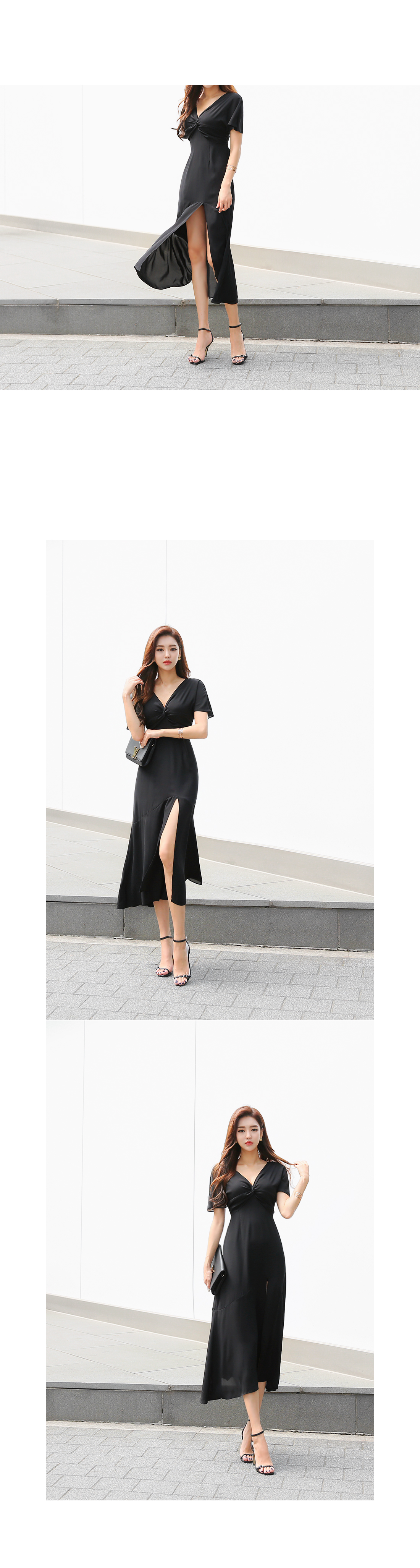 밑단 슬릿 디테일이 레그라인 노출을 해주어