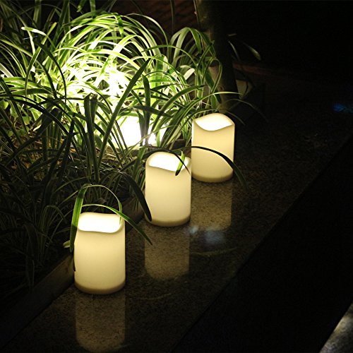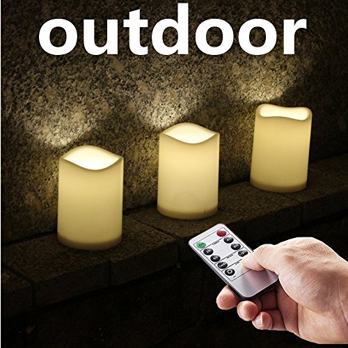 Outdoor Waterproof Remote Flameless Battery LED Pillar Candles, Made of Plastic, Won't Melt, Weather Resistant Design 3 x 4" Set of 3