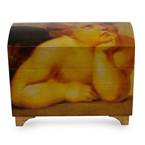 NOVICA Decorative Angel Pinewood Decoupage Chest, Beige, 'Cherubs'