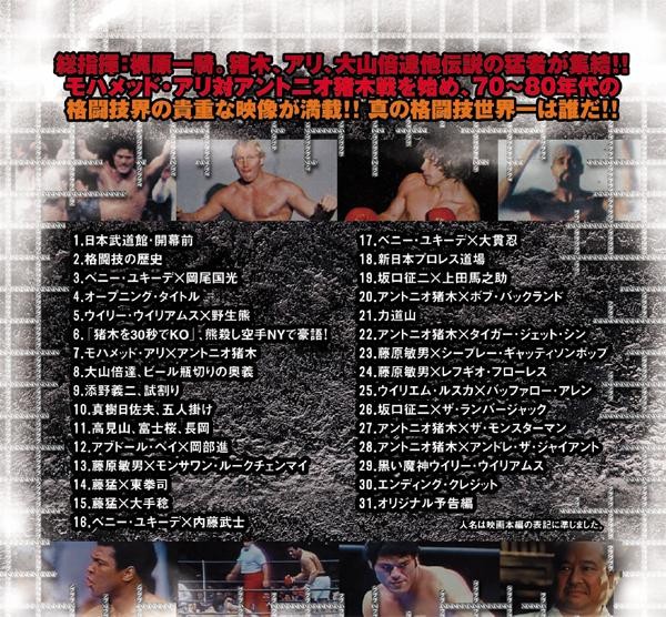 猪木、アリ、大山倍達他、伝説の猛者が集結!!モハメッド・アリ対アントニオ猪木戦を始め、70-80年代の格闘技界の貴重な映像が満載!!