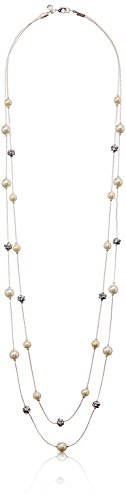 -. Title : Silver Tone Two Row Simulated Cream Pearl Illusion Necklace and Earring Jewelry Set, 36"