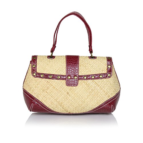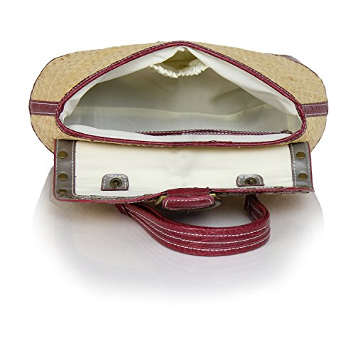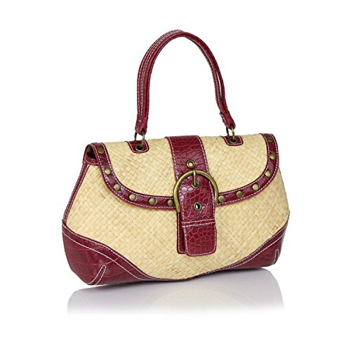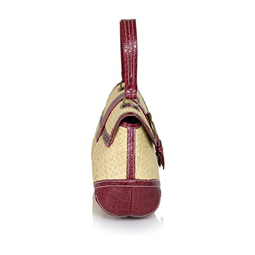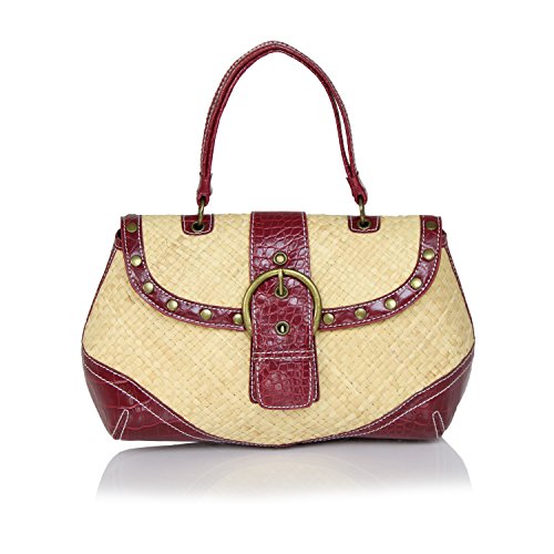 Vintage Straw Handbag w/Faux Leather Trim & Top Handle, Summer Shoulder Bag w/Buckle