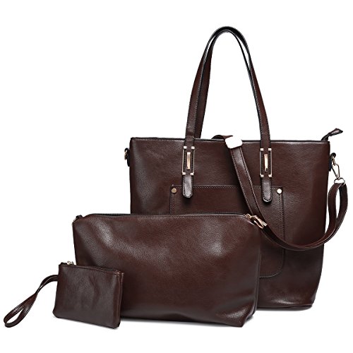 LOOSLOON Womens 3Pcs/Set Leather Handbags Fashion Casual Top Handle Satchel Shoulder Bag + Crossbody Messenger Bag + Tote Purse Wristle Wallett