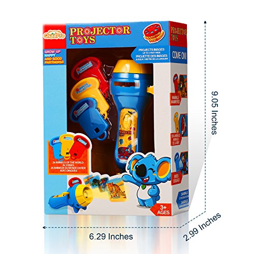 【big fun】it can be projected onto walls and floors or ceilings, it will achieve the best effect in a dark environment, make sure there is no light, a clear image of up to 1 meters wide. It can also be used as a flashlight, long lasting led bulb and adjustable focal length lamp holder make it a very entertaining's toddler toy. (warm tips:①two aaa batteries not included. ②if the projection is not clear, try to turn the lamp cap to adjust the focus).
