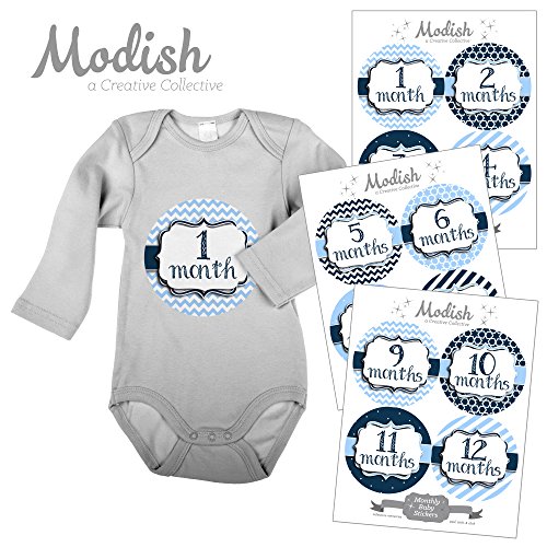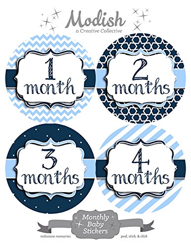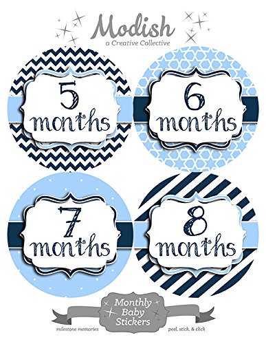 12 Monthly Baby Stickers, Baby Boy, New Baby Gift, Baby Shower Gift, Baby Book Keepsake, Baby Blue, Navy Blue, Nursery Decor