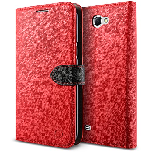 Galaxy Note 2 Case, Lific [Saffiano Diary][Red/Black] - [Card Slot][PU Leather Wallet] - For Samsung N7100 Devices