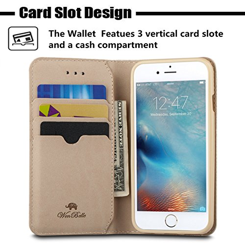 iPhone 6s Wallet Case,WenBelle [Calendula Series] Premium Genuine Leather,cowhide Flip Book Design Case with Stand Feature, Magnetic Closure for Apple iPhone 6 6s 4.7 inch (Gold)