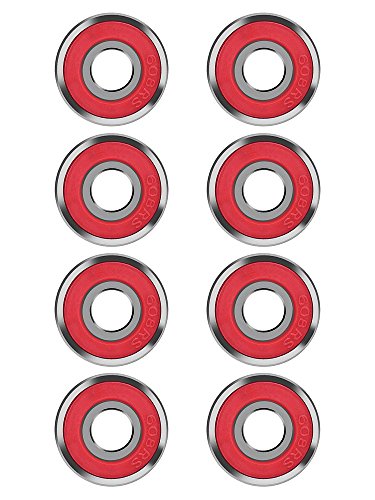 eBoot 8 pack 608 2RS bearings skateboard bearings longboard bearings for toy, double shielded (red) Standard size and proper quantities: 8 Pack red 608 2RS skateboard bearings, proper amount for meeting your needs; You can get red bearings that make your skateboard looks cool. Reliable material: Skate bearings is made of bearing steel, is more durable and has better performance than carbon steel; 608 2RS skateboard bearings have good sealing performance, colorful rubber caps on both sides can keep dust out. Wide application: Suitable for being applied in such applications as skateboards, inline skates, longboard, roller skate, scooters, toy, etc. Warm notice: 1. If you apply it for the main spin bearing of toy, please make sure the size of bearing is 608 bearing and clean the oil of bearings; The oil can anti-rust and lengthen life, but will reduce the speed. 2. If you want to keep your bearings a lengthen lifespan, please keep bearings clean, dry and maintain with slushing oil and lubricating oil regularly. Specifications: Material: bearing steel Color: red Inner diameter: 8 mm Outer diameter: 22 mm Thickness: 7 mm Package includes: 8 x Red skateboard bearings 0