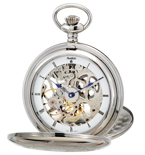 -. Title : Avalon Imperiale Series 17 Jewel Hand Wind Silver-Tone Skeleton Pocket Watch and Chain # 8800SX
